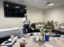Tim McDonnell lead the group in a President's Trivia game |